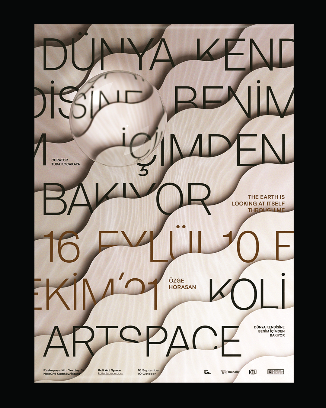 Küratörlüğünü Tuba Kocakaya’nın üstlendiği Özge Horasan’ın ilk kişisel sergisi “Dünya Kendisine Benim İçimden Bakıyor”, 16 Eylül – 10 Ekim 2021 tarihleri arasında KOLİ Art Space’te izleyici ile buluşuyor. Sergi, Kadıköy Belediyesi’nin desteği ile gerçekleşecek olan Mahalle Festivali kapsamındaki paralel etkinliklerden biridir.
