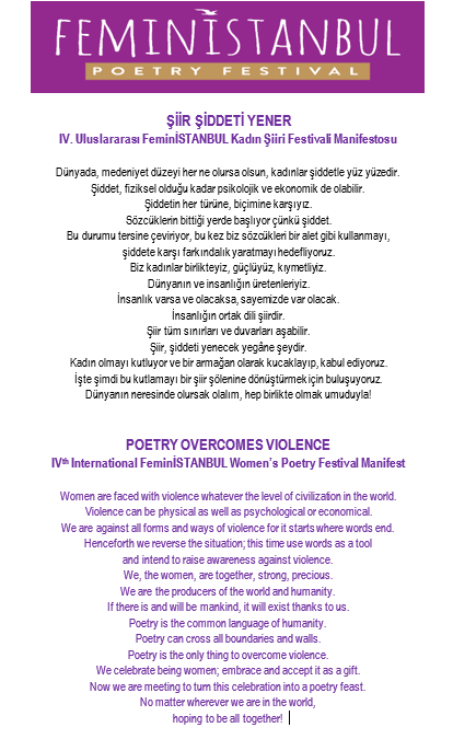 Uluslararası FeminİSTANBUL Kadın Şiiri Festivali, 7-9 Kasım tarihleri arasında dördüncü kez düzenleniyor. Ana temasını kadın, kadın sorunları, kadının her türlü halini içeren durumlar olarak tanımlayan Feminİstanbul Kadın Şiiri Festivali Türkiye’de bir ilki gerçekleştiriyor. Kadın temalı şiirleriyle her dilden, dinden ve cinsiyetten şair bu festivalde ‘şiddeti yenmek’ amacıyla bir araya gelecek.